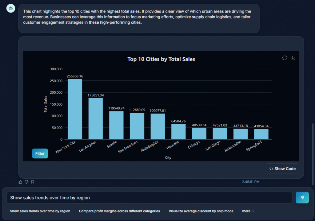 Ask a question and get instant, accurate answers — no dashboards, no SQL, no delays.